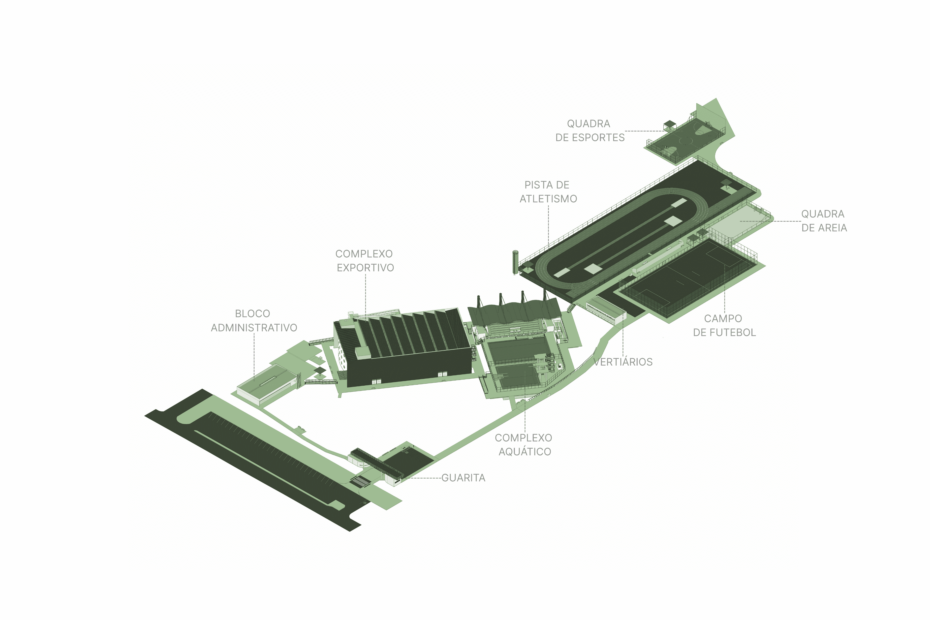 O projeto consistiu no levantamento As Built completo e modelagem BIM do complexo esportivo existente.