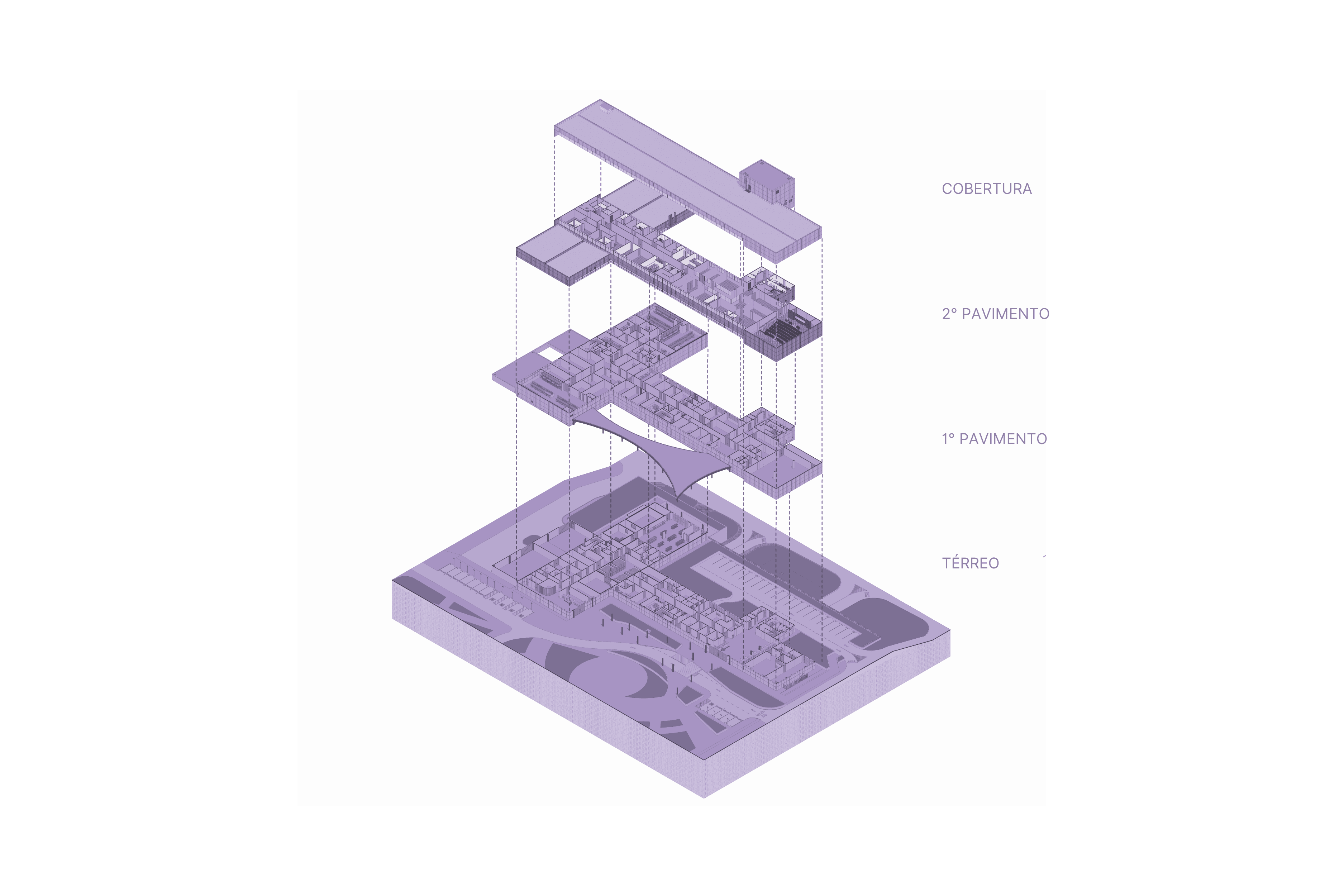 A concepção arquitetônica foi elaborada pela equipe do órgão público, cabendo à modelagem BIM garantir precisão técnica, integração interdisciplinar e eficiência na coordenação dos projetos complementares.